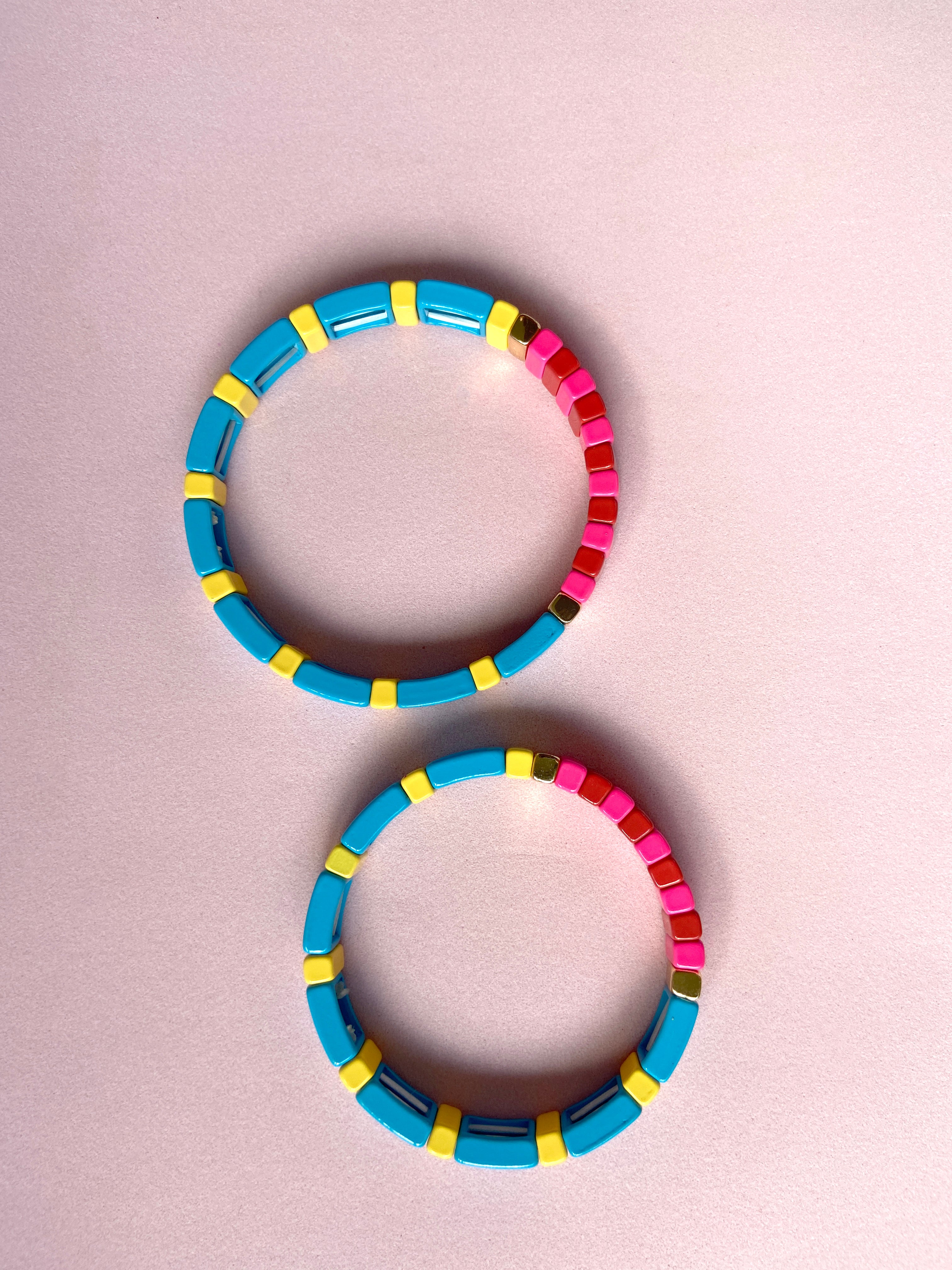 Material: cuentas de Alineación metálica esmaltada conectadas entre si con pequeñas gomas elásticas.