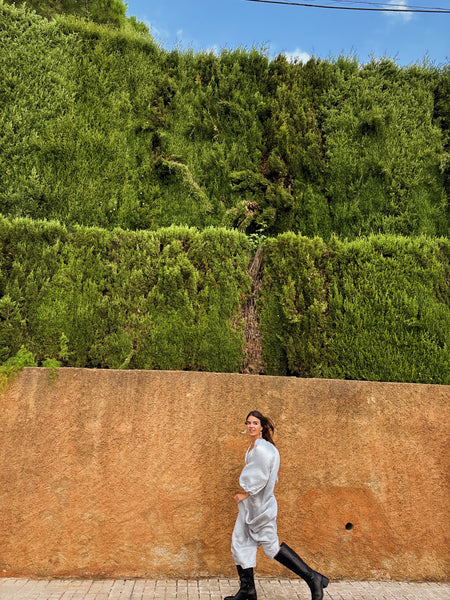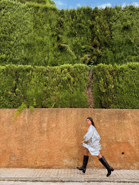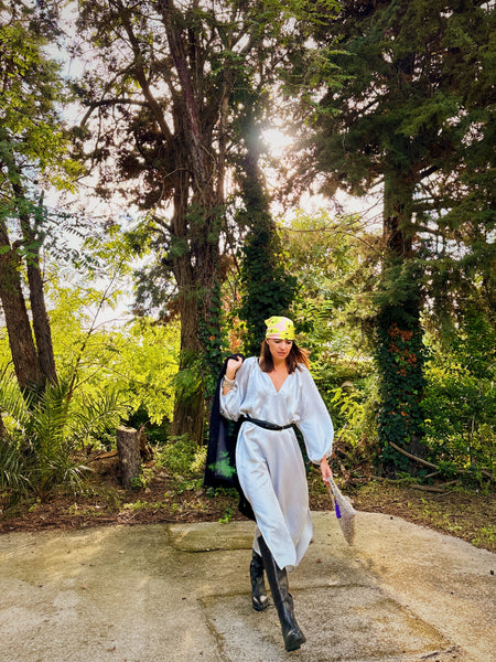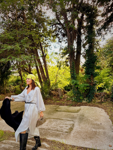 Diseñado y confeccionado en España con un tejido de alta calidad, 70% viscosa, 18% poliamida y 12% poliéster, que combina suavidad, ligereza y resistencia, pensado para acompañarte en tus momentos más especiales.